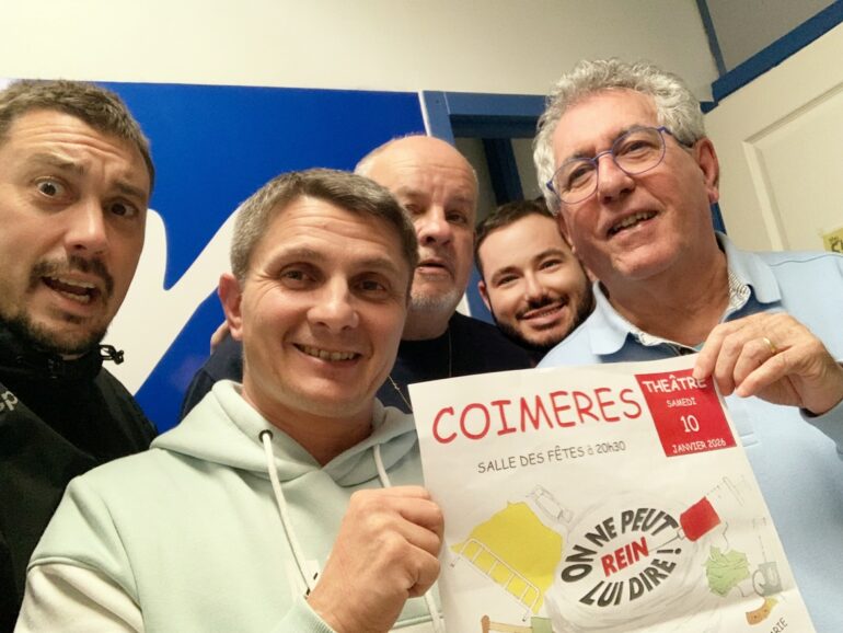 - L’Annonce de l’Événement : C’était l’occasion d’annoncer la date à noter dans votre agenda ! L’association se produira à la salle des fêtes de Coimères le Samedi 10 Janvier 2026 pour jouer leur nouvelle pièce : la comédie d’Alexandre Bondis intitulée « On ne peut rien lui dire ».